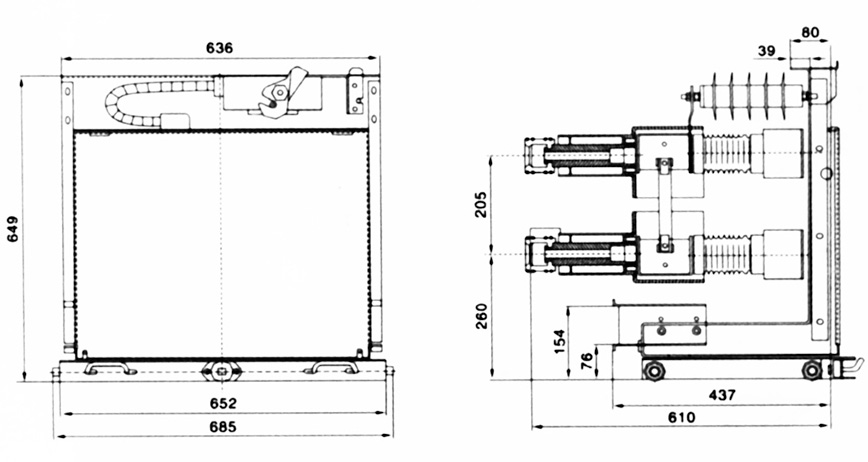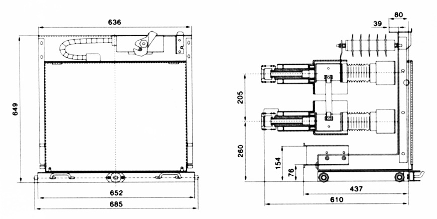 此車型適用于配置JDZ(X)10<G>型電壓互感器,安裝尺寸圖參照大連第一互感器廠,如配置其他型號電壓互感器,訂貨時(shí)需另外注明。熔斷器按XRNP-10型或RN2-10型配置。