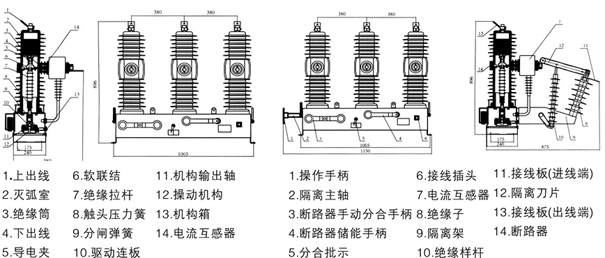 3、操作機構為彈簧操作機構,有手動和電動兩種,需要時可加裝遙控操作裝置和躲避合閘涌流裝置。要求的外供電源功率不大于70W,易于配備后備電源。設計獨特的緩沖裝置,性能優(yōu)異,反彈小,噪聲低。
