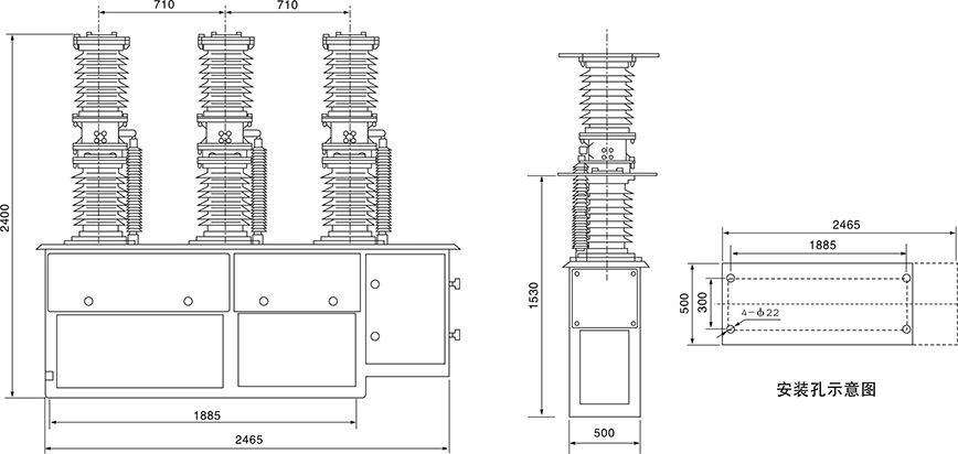 5.內(nèi)裝電流互感器計量精度可達0.2級,或可實現(xiàn)三相差動保護;